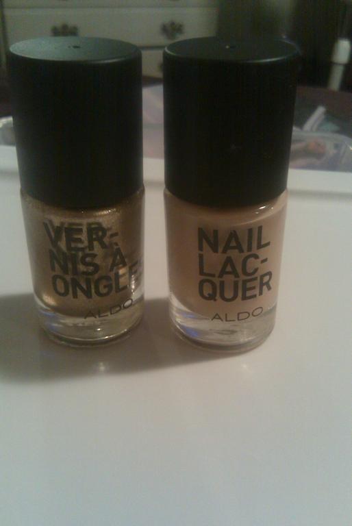 I love Aldo`s products, And I`m adding their nail polishes to that list. To the left is `Stay gold` which is a really shimmery gold pigment and next...