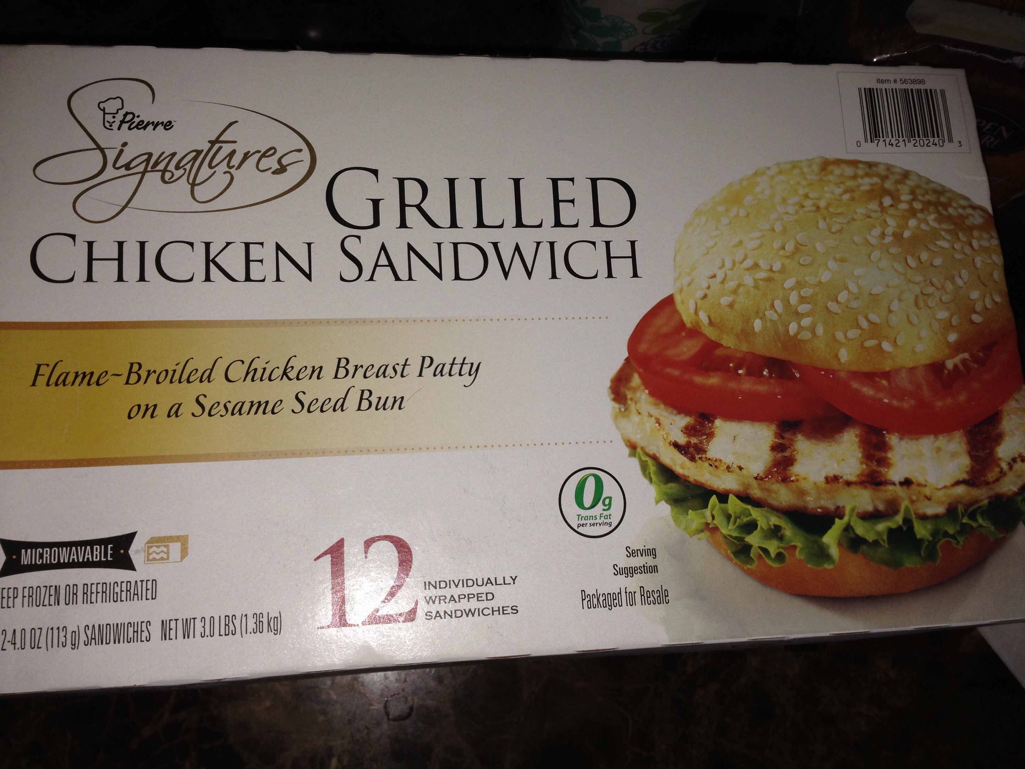 This is a box of Pierre Signatures Grilled chicken sandwich I had purchased from Costco when it was on sale. Each box contains 12 burgers and each...